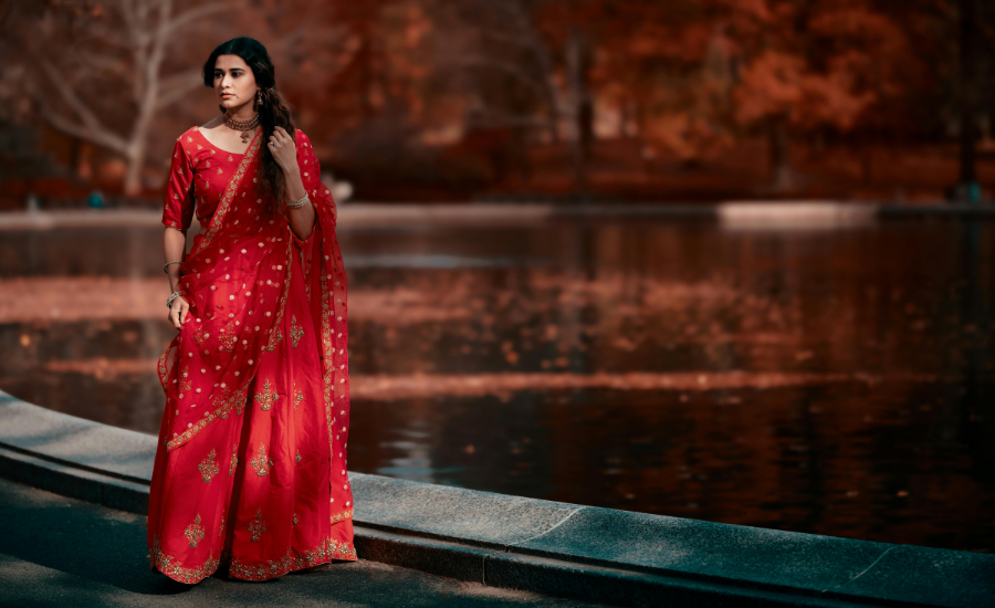 - Red Bandhani saree symbolizes love and is often worn by brides.